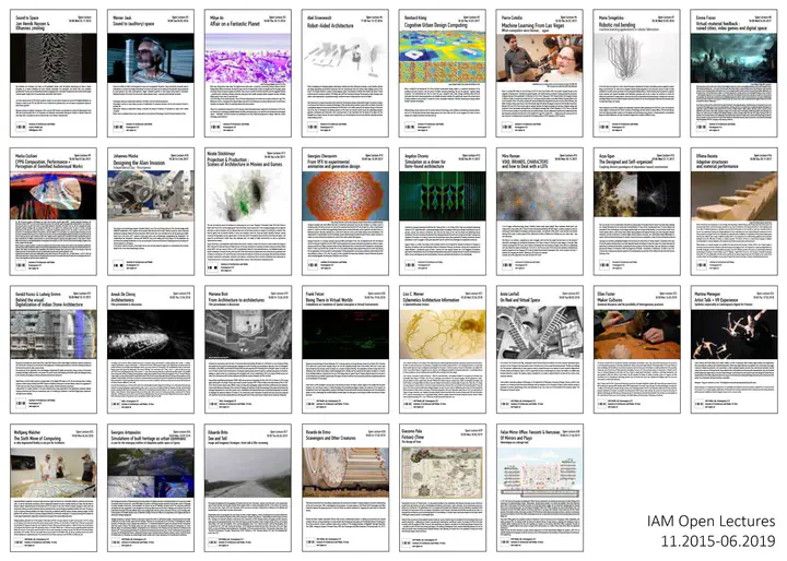 The IAM Open Lecture Series was founded in late 2015 at the Institute of Architecture and Media (IAM), TU Graz. The project slowly formalised as a mapping of the research ecology concerning computation and related discourse in the wider field of architecture and media. The series hosts talks by younger academic researchers and practitioners aiming to present and promote experimental, interdisciplinary and ongoing research. All sessions are hosted at the New Media Lab of IAM, Kronesgasse 5/III, Graz.