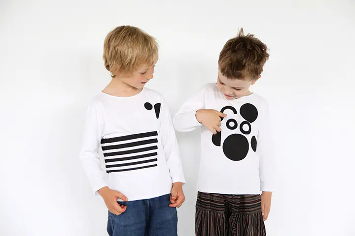 John Paul George & Me is a collection of interactive wearable musical instruments for kids. Each T-shirt represents a specific instrument and all together form a rock ensemble. Through the seemingly magical clothes that produce sound by touch, the project brings to children an interactive musical game, encouraging and stimulating their musical interest as well as collaboration with each other to perform music. The project was developed by textile designer Selina Reiterer and computational designer Constantinos Miltiadis for exploring playful applications of smart materials and interactive wearable technology.