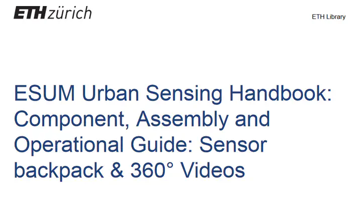 Griego, Danielle, Saskia Kuliga, Martin Bielik, Matthias Standfest, Varun Kumar Ojha, Sven Schneider, Reinhard König, et al. ‘ESUM Urban Sensing Handbook: Component, Assembly and Operational Guide: Sensor Backpack & 360° Videos’. Application/pdf. ETH Zurich, 13 September 2017. https://doi.org/10.3929/ETHZ-B-000184587.